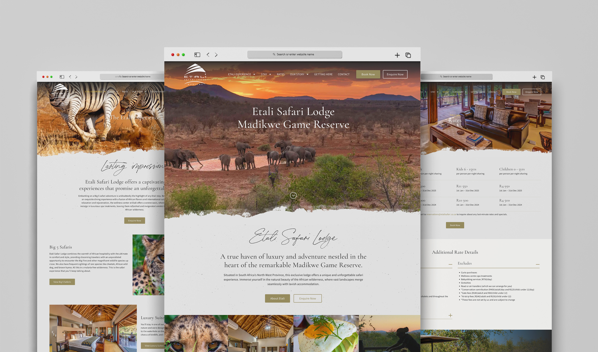 Etali Safari Lodge reached out to place a greater emphasis on their leisure offering. Season time was fast approaching and the website had to create the desire for tourists to book accordingly. The look and feel required an update along with the copy that required a refresh to assist with those all important Google rankings.