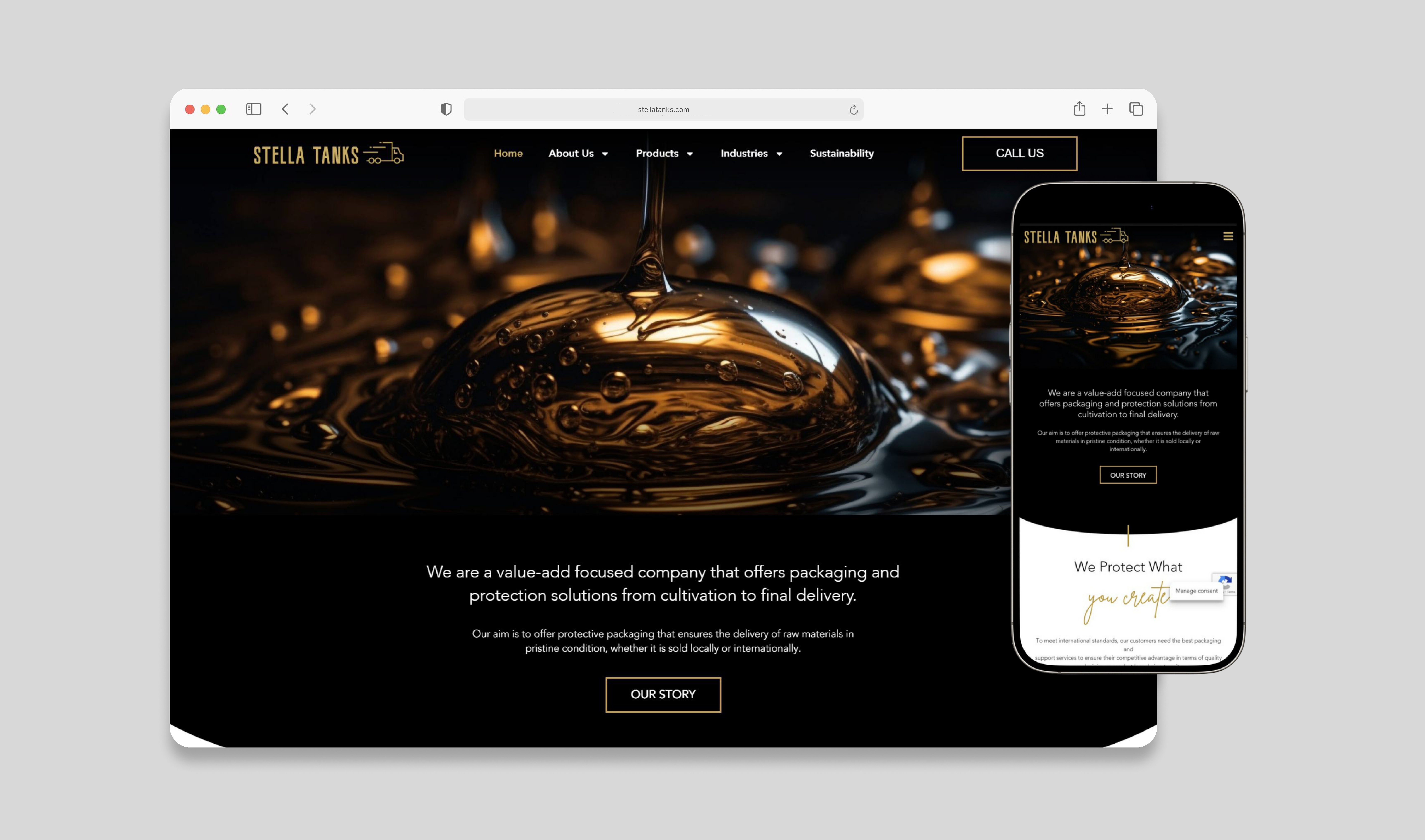 Stella Tanks needed a website that captured the essence of its premium offering while showcasing their high-tech protective packaging solutions, highlighting their expertise, and conveying reliability through a strong digital presence. With no existing site in place, the challenge was to create a visual identity that communicated sophistication, trust and industry credibility. The design needed to feel modern and elegant while delivering a seamless user experience that clearly presented their products, services and brand values.